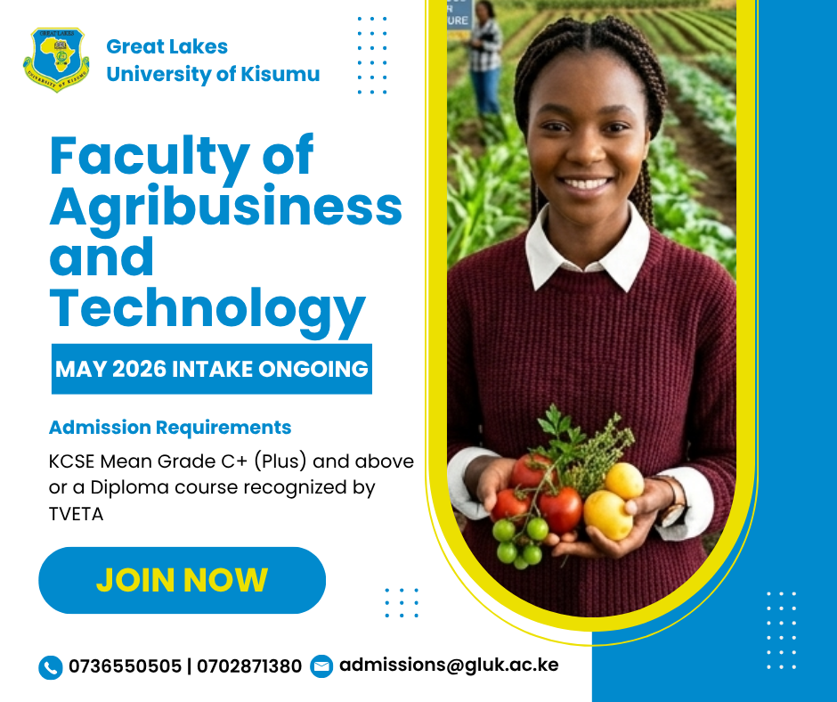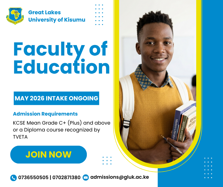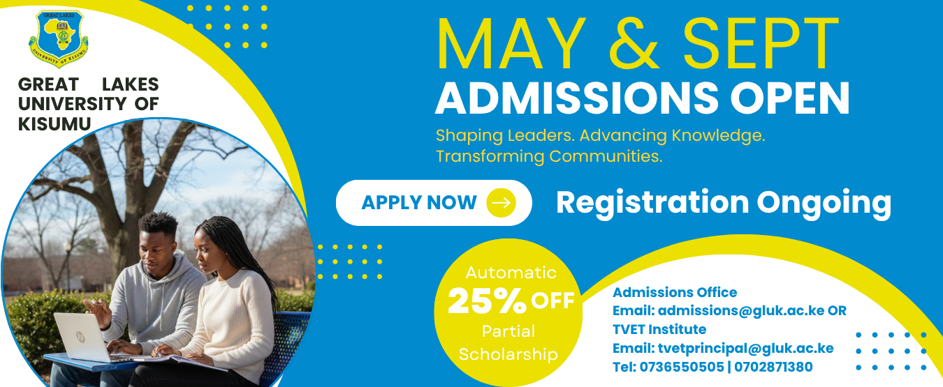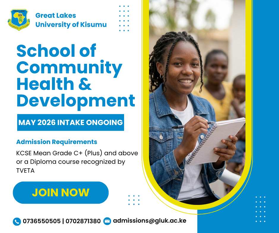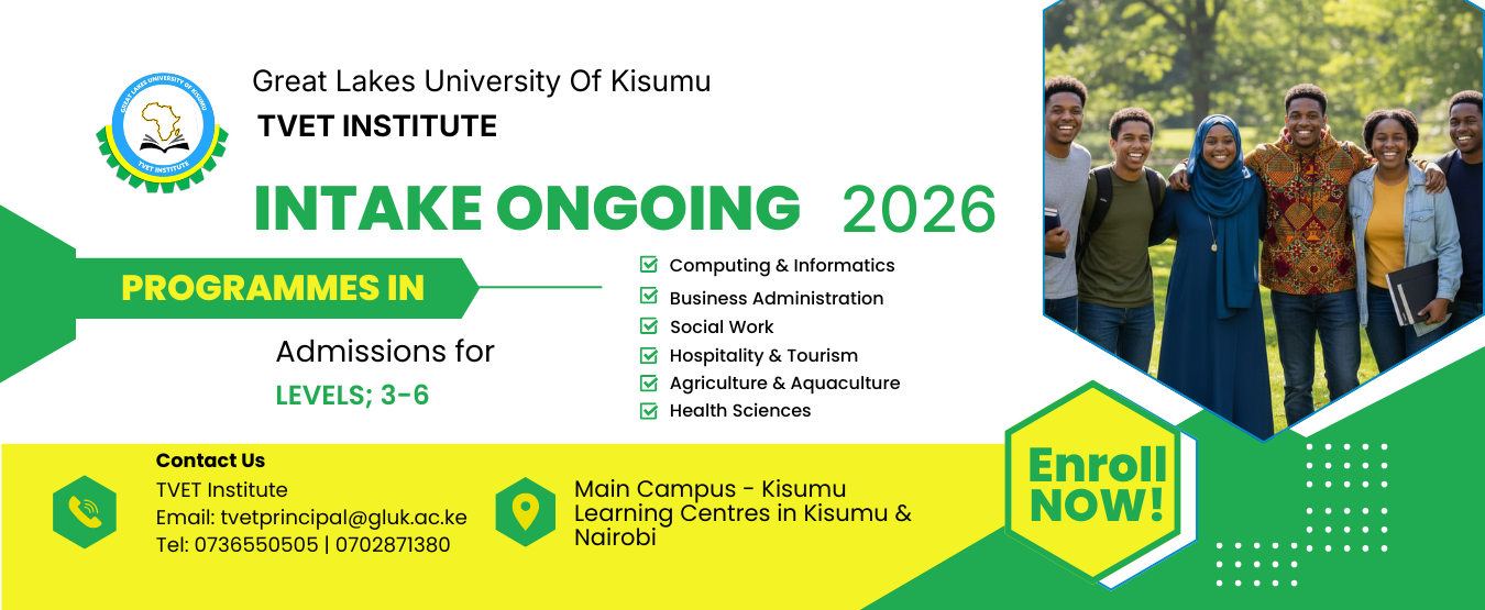 Great Lakes University of Kisumu (GLUK) stands out as a premier institution dedicated to academic excellence, research, and community development. With a focus on practical training, innovation, and holistic learning, GLUK equips students with the skills, knowledge, and experience necessary to thrive in their careers and make meaningful contributions to society.